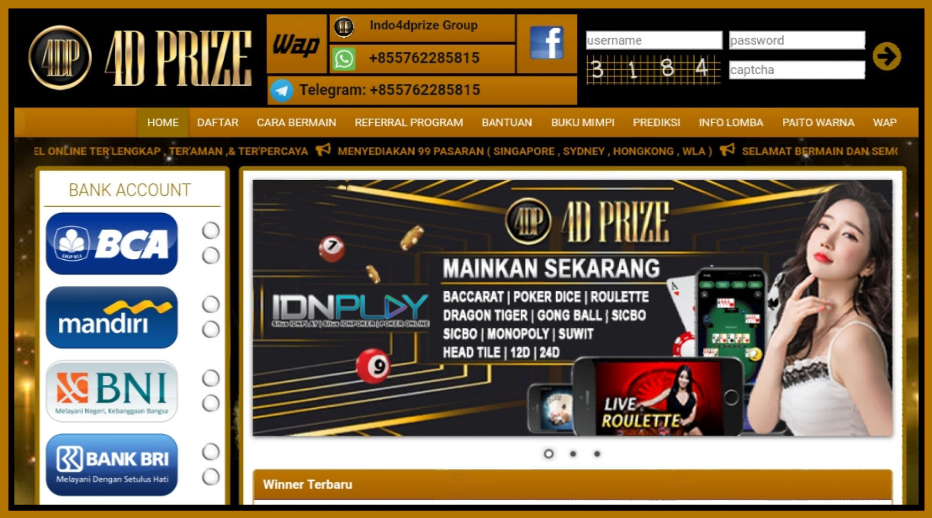 4Dprizewlatoto Wap & Web 4D Prize Lucky| Link Alternatif 4d prize net Daftar dan Login wla toto 4dprize Kehadiran dari 4DPrize merupakan salah satu bandar togel wla yang Terbesar, Terbaik dan Terpercaya saat ini di Indonesia. Situs ini telah teruji dalam sistem keamanan dan pembayaran kemenanggan yang ontime sehingga layak dijadikan sebagai tempat bermain togel online terpercaya. Berapapun kemenangan anda akan di bayar penuh disini, karena 4D Prize adalah merupakan BO terbesar yang merupakan salah satu dari anak group bandar togel terbesar di Indonesia yang disebut dengan 4dprizewla. Apa itu 4DPrizewla?, yaitu salah satu group bandar togel online terbesar dan terpopuler saat ini yang tentunya telah terbukti dan teruji keamanannya serta di telah dipercaya oleh berbagai sobat togels di Indonesia.