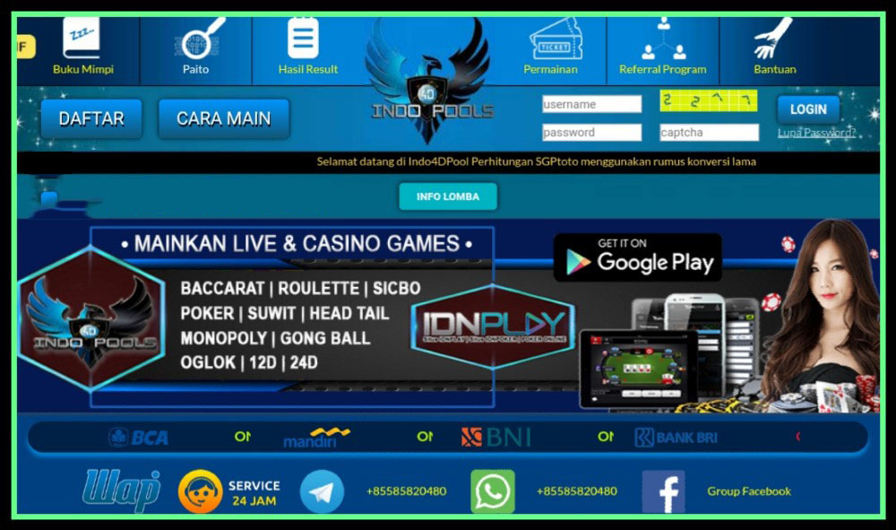 Indo4DPools Login Wap & Web Login Indo 4D Pools Link Alternatif Daftar Terbaru Indo4DPool – Indo 4D Pools sudah merupakan agen bandar togel wla terbaik dan tentunya sudah terpercaya, terbesar saat ini di negara Indonesia. Situs ini telah teruji aman dan terpercaya oleh banyak pencinta togel sehingga layak dijadikan sebagai tempat bermain togel online. Di sini berapapun nominal kemenangan anda akan di bayar penuh di sini, karena Indo4D Pools bukan merupakna BO kaleng-kaleng atau Bo yang mau menipu tetapi melainkan salah satu BO terpercaya yang berasal dari 4DPrize Group. Apakah itu 4DPrize Grup?, yakni salah satunya grup bandar togel online paling besar yang tentu saja sudah bisa dibuktikan dan terbukti keamanannya dan di yakin oleh beberapa pemain togel Indonesia. Keamanan dan keyakinan Indo 4D Pools dapat kita saksikan dan rasakan dari mekanisme keamanan yang di telah diterapkan sejak lama.